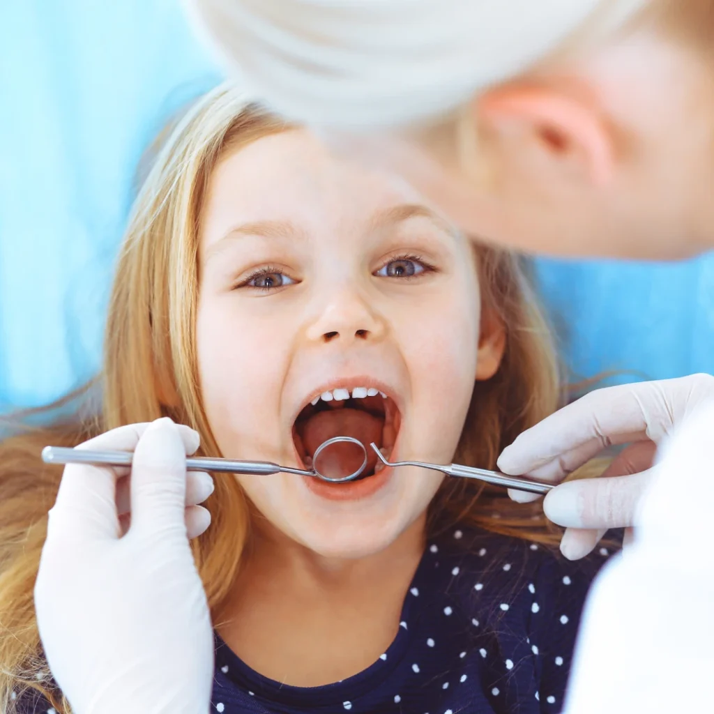 A child dental exam is a gentle evaluation of your child’s teeth, gums, and overall dental health. These visits allow our dental professionals to check for early signs of tooth decay, gum disease, and other concerns that can affect baby teeth and developing smiles.